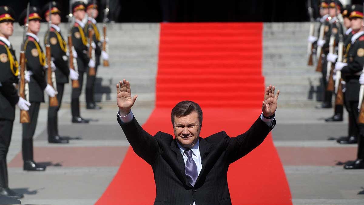 Efter ett folkligt uppror i Ukraina flyr Viktor Janukovytj under tumultartade former i februari 2014 till Ryssland.