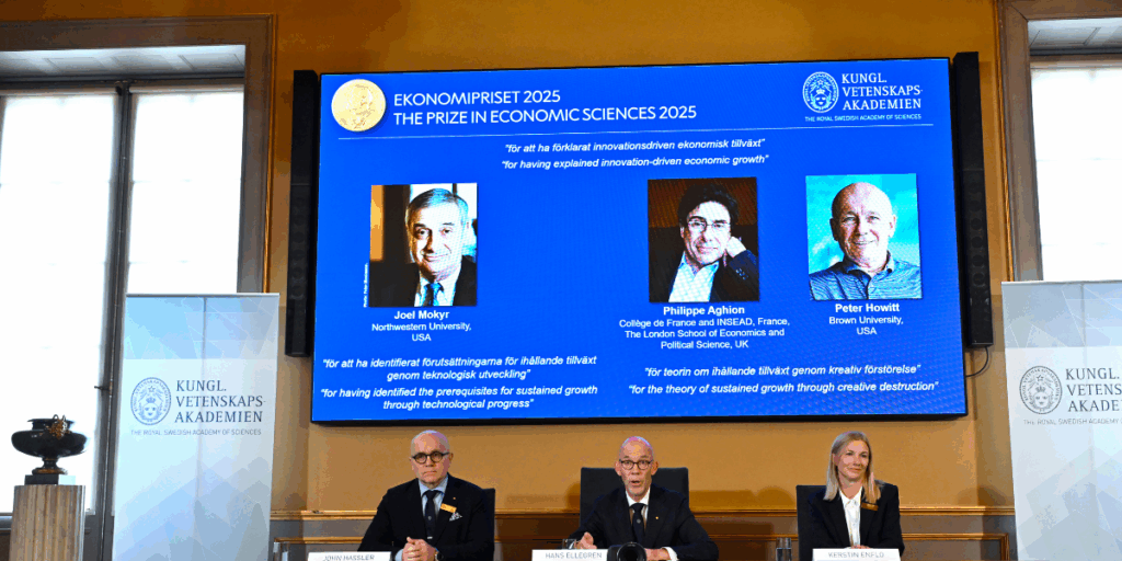 Sveriges riksbanks pris i ekonomisk vetenskap till Alfred Nobels minne gick till Joel Mokyr, Philippe Aghion och Peter Howitt, tre forskare som förklarar varför ekonomier växer, och vad som händer när de slutar göra det.