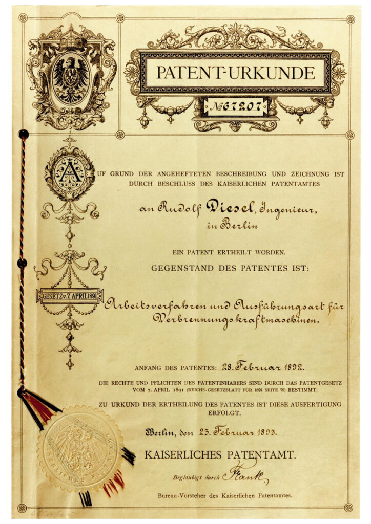 De båda stora och tekniskt drivna företagen Krupp och Maschinenfabrik Augsburg (senare en del av lastbilstillverkaren MAN) köpte tillverkningsrätten och redan samma år stod de första försökmotorerna klara för start. Alltså världens första Dieselmotorer.