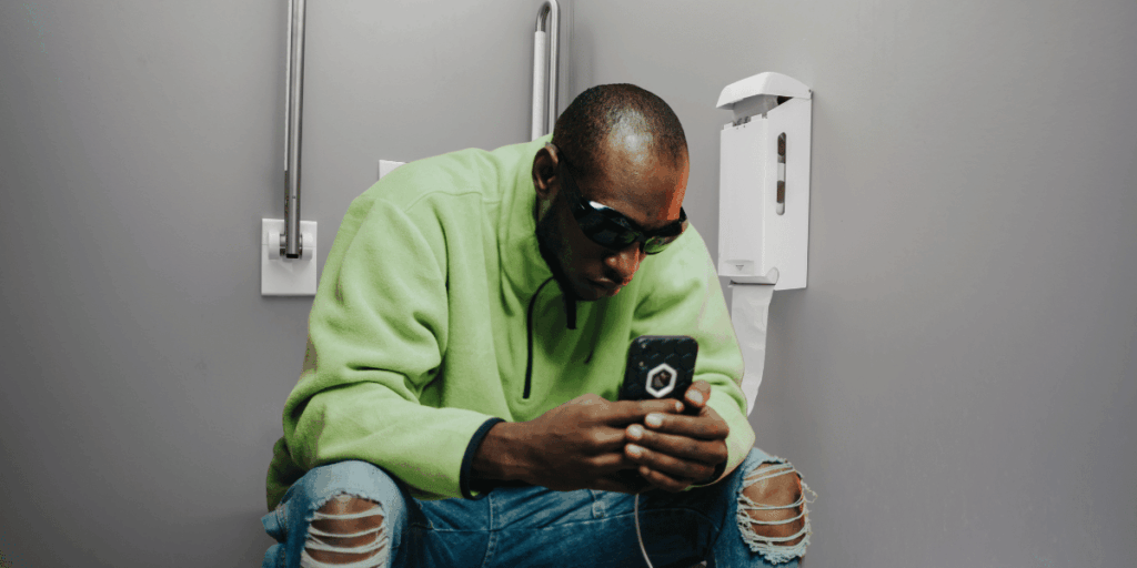 “Om telefonen hjälper dig att slappna av, okej – men håll det kort”, säger Pasricha. “Och när du är klar – res dig upp, dra upp byxorna och fäll ner locket innan du fortsätter skrolla.”