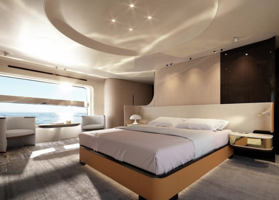För motoriseringen står dubbla MTU-dieslar på totalt 5200 hk och då knuffar de iväg yachten i 25 knops fart.