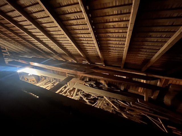 Kims son är också med på vandringen i ladan. Ser konkret på vad som ligger framför dem. När gården är såld, ska ladan vara tom.