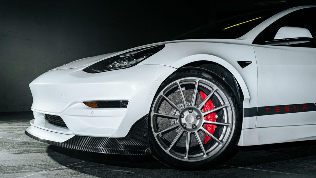 Så här ser en Model 3 ut efter att den uppgraderats med svenska Koenigsegg-delar i kolfiber. Foto: Unplugged Performance