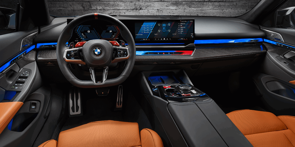 Som Touring levererar M5 även praktiska egenskaper. Bagageutrymmet rymmer 500 liter med baksätet uppfällt och hela 1 630 liter när det fälls. Det gör bilen till ett alternativ som förenar familjeliv med körglädje, utan att kompromissa på prestanda.