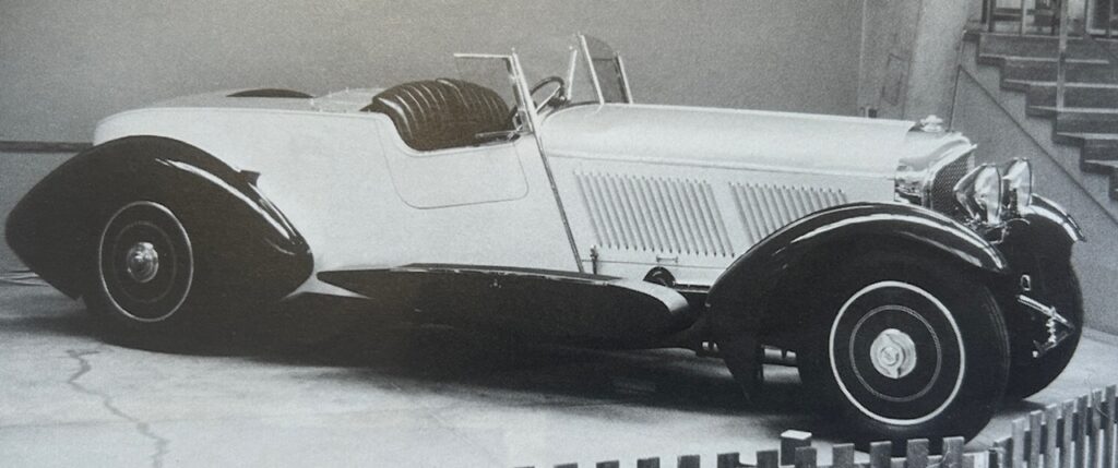 Här fanns vackra sportbilar som den vackra tvåsitsiga Mercedes-Benz 500K roadstern från 1936, som stod bredvid en vacker tvåfärgad 6,5 liters Bentley med en boattailed speedster-kaross från karossmakaren Barker.