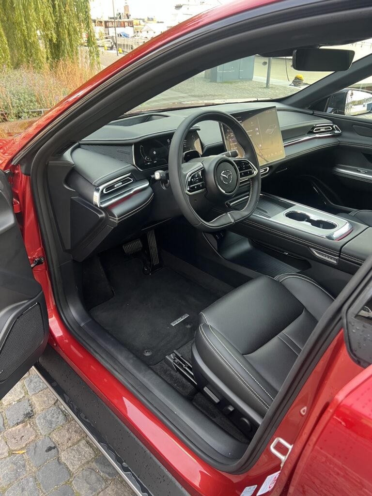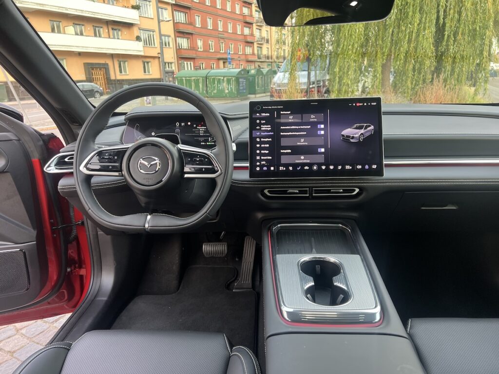 Mazda har också gått längre än vanligt in i skärmvärlden. Den stora mittdisplayen dominerar och det är tydligt att detta är en bil skapad i en annan kultur av bilbyggande än Mazdas egen.