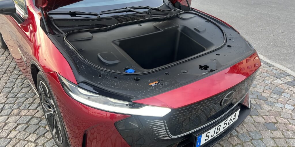 Bagaget är veckans tydligaste minus i praktiken. 337 liter bak är litet i en bil på nästan fem meter. Frunken på 72 liter hjälper men gör inte bilen till någon storlastare.