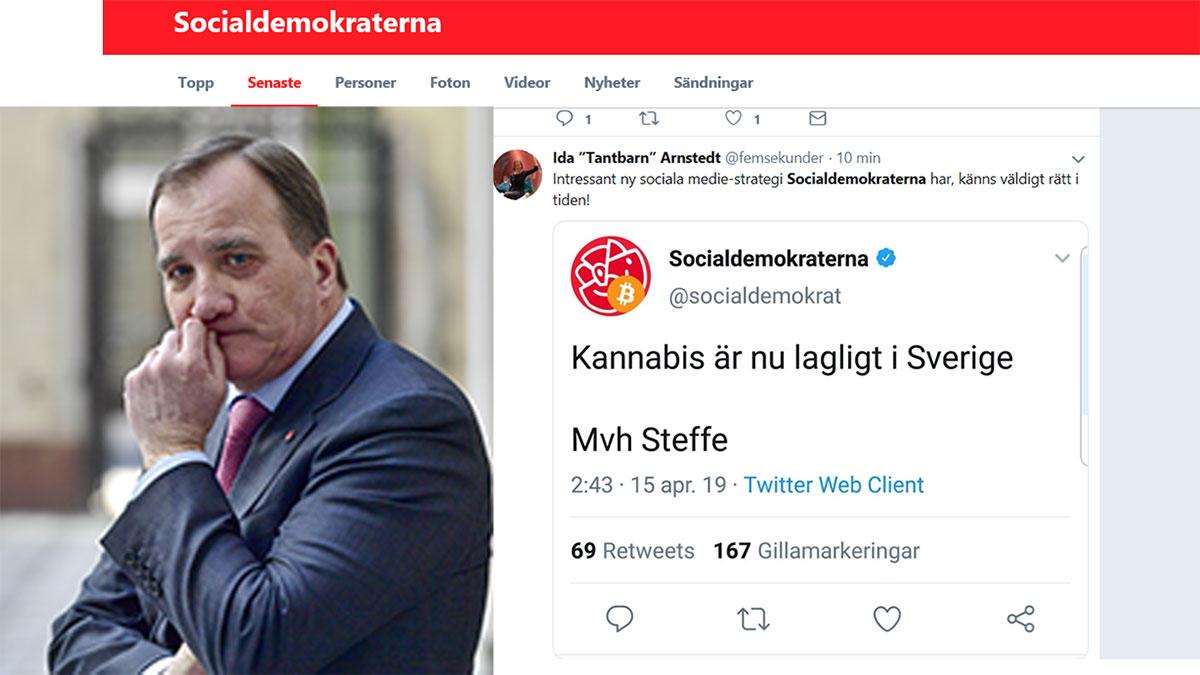 Strax efter klockan 02 i natt började Socialdemokrasternas Twitterkonto uppträda märkligt. Flera underliga tweetar publicerades, bland annat att Stefan Löfven ska avgå och att den svenska kronan ska bytas ut mot bitcoin, uppger SVT Nyheter.