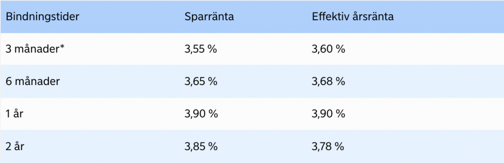 I många fall kan man få en hög sparränta genom att ”endast” binda sitt kapital i tre månader. Detta kan vara ett bra alternativ för den som vill ha ett sparkonto med hög ränta, men som är osäker på hur länge man klarar sig utan sparpengarna.