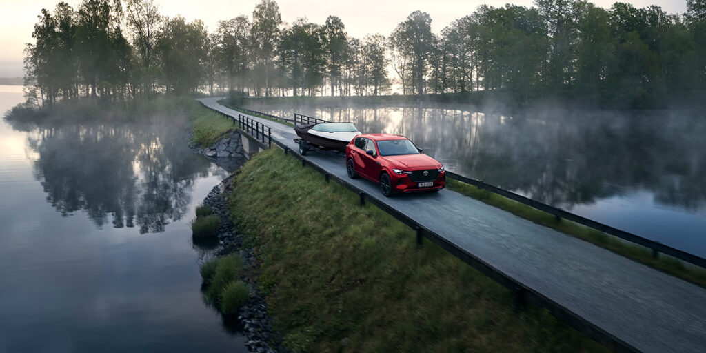 Med en dragvikt på 2 500 kilo är det väldigt få konkurrenter som har så hög kapacitet som Mazda CX-60. Du kan utan problem dra båten eller en stor husvagn.