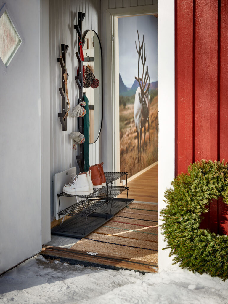 Skidåkning och fjällvandring kräver mycket utrustning, tjocka jackor och rejäla skor. I hallen har Hanna därför inrett med IDANÄS garderob.
