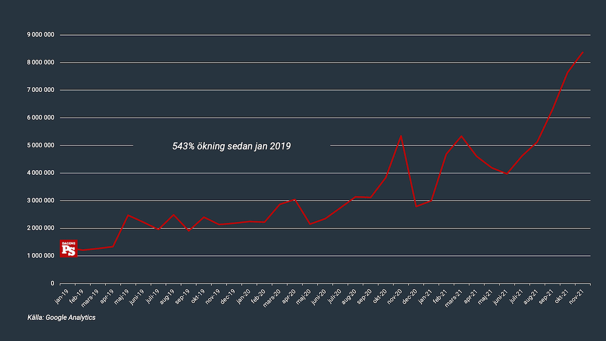 Framgångssagan för Dagens PS fortsätter och nya rekord slås nästan varje månad – tittar man tillbaka till 2019 är tillväxten över 500 procent.