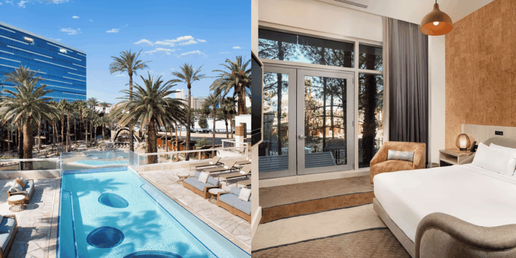 Ett färgstarkt alternativ bortom Strippen som lyckas kombinera stil med rimliga priser. Här finns flera restauranger, ett enormt poolområde med strandkänsla och – hör och häpna – inga resortavgifter. Rummen är snyggt designade med retrovibbar och minibar till normalpris. Passar perfekt för den som vill ha Vegas utan att bli rånad av Vegas.