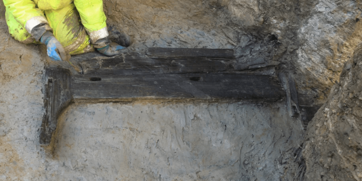 Arkeologer håller just nu på med en utgrävning i centrala London. En träsäng som användes vid en romersk begravning har för första gången hittats i Storbritannien.