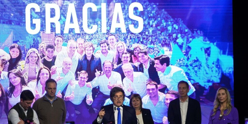 “I dag är helt klart en historisk dag för Argentina”, sade Milei till jublande anhängare.