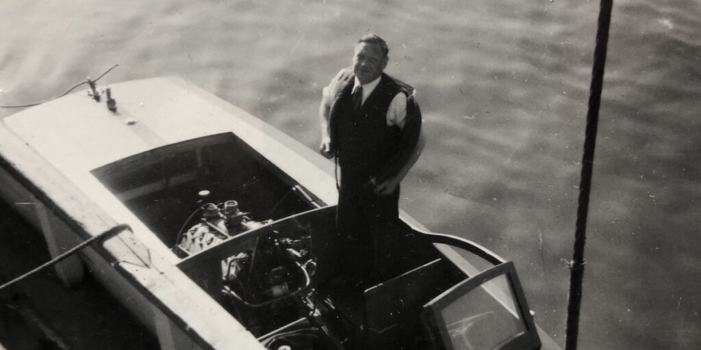 Men riktigt helt slut var inte Ess-båten med dessa två. Kaffe-kungen Lennart Zettergren ville 1960 ha en mahognyracer till ett dubbelmontage av Mercury-sexor som han köpt från den svenske Mercury-agenten NK Kristensson.