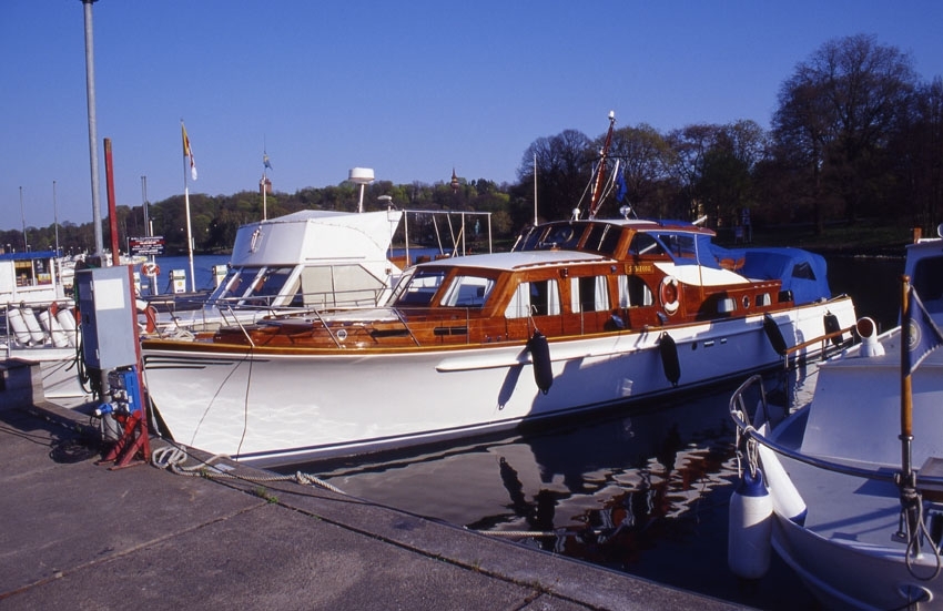 En av de otroligt vackra motorjakterna som byggdes under 1910-talet på Saltsjöbadens Yachtvarv efter ingenjör Hugo Schuberts ritningar.
