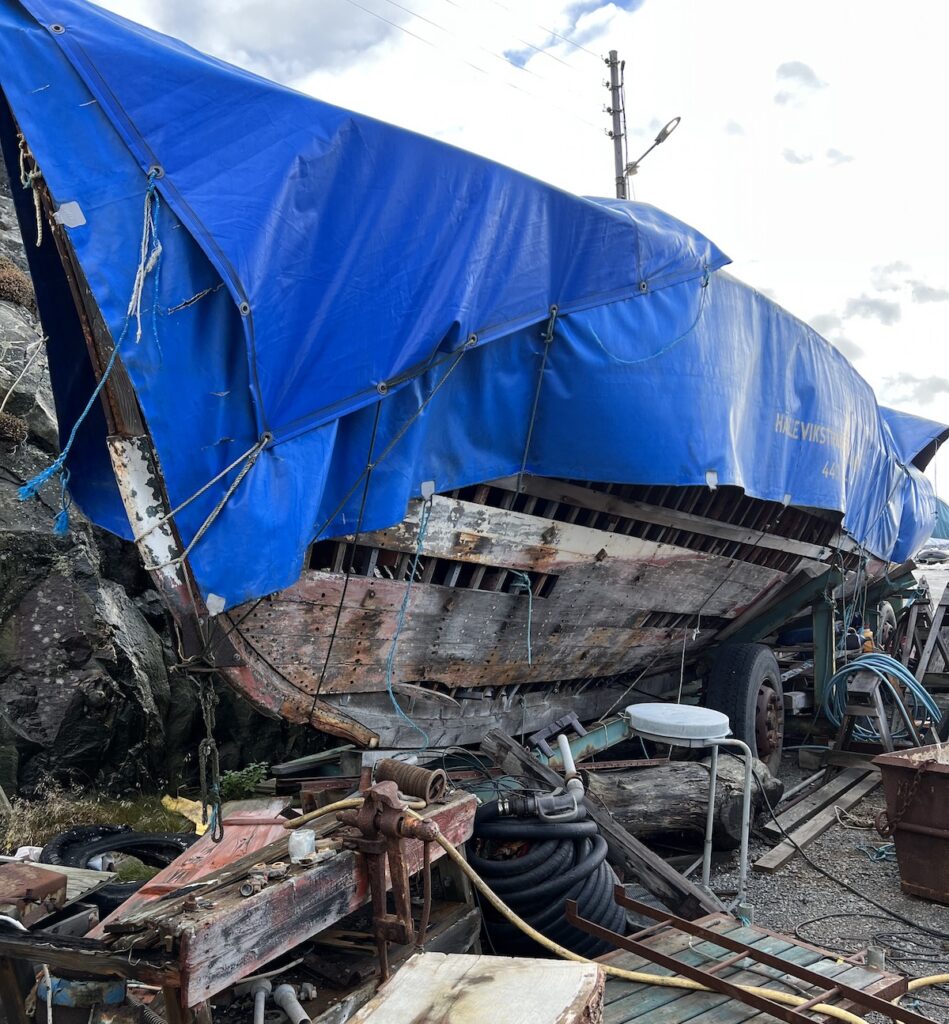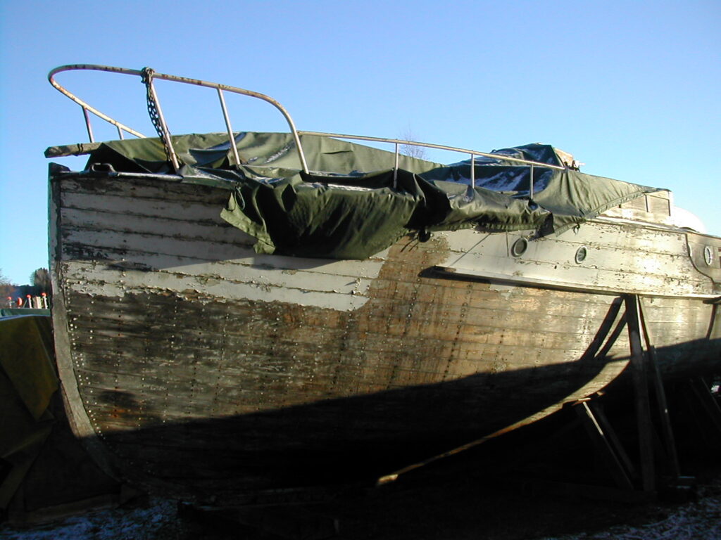 Idag ligger denna underbara båt fortfarande under täckning. Men tiden har tärt hårt på henne. Ett växlande kallt, varmt, blött och torrt klimat har gått hårt på hennes struktur.