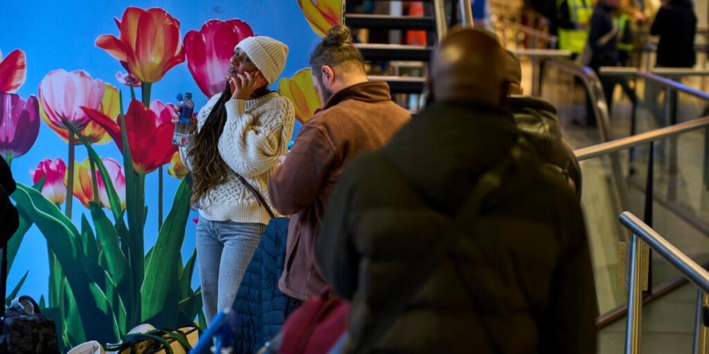 Tulpaner från Amsterdam på väggen, men att ta sig från Amsterdam i början av januari var inte lätt när mer än 3 000 flighter ställdes in på Schiphol. (Foto: Peter Dejong/AP-TT)