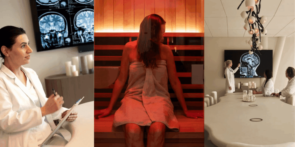Vi svenskar ligger som vanligt steget före. I Stockholm kan du redan idag boka tid hos Neko Health, Daniel Eks hälsotechbolag som scannar kroppen med infrarött ljus. På Sand Clinic (också Spotify-pengar bakom) erbjuds IV-droppar, blodprov och rödljussauna i klinikmiljö – ett spa möter labb. Och The Faculty vid Stureplan har förvandlat den gamla PT-timmen till en high-tech longevity-session med egen biomarkörsanalys.