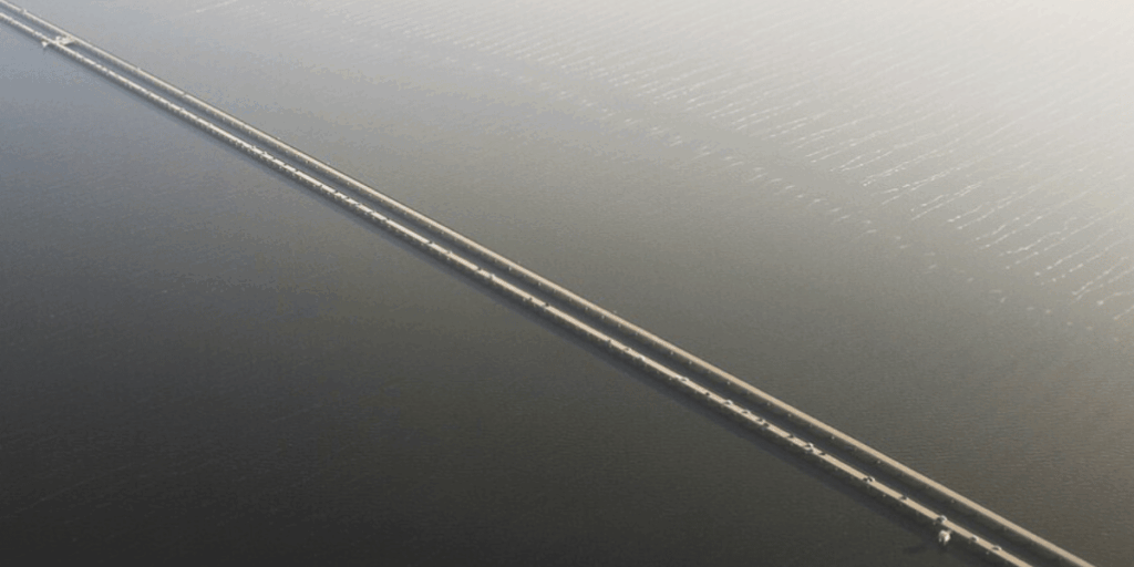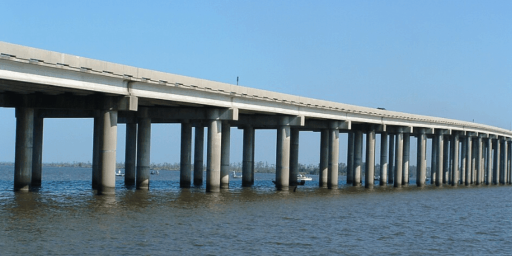 Världens längsta sammanhängande bro över vatten, cirka 38,5 kilometer lång. Den tar dig rakt över Lake Pontchartrain och är så hypnotiskt rak att man undrar om man egentligen kör någonstans. När den byggdes på femtiotalet var det första gången ett brobygge masstillverkades nästan som en bil – prefabricerad betong, momentkapade lösningar och en ingenjörsmässig framåtanda som fick ASCE att applådera.