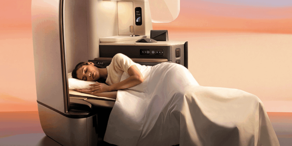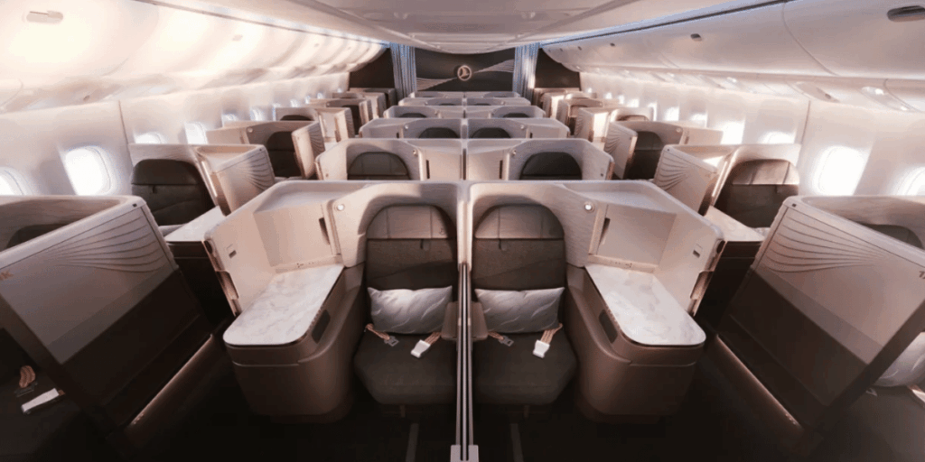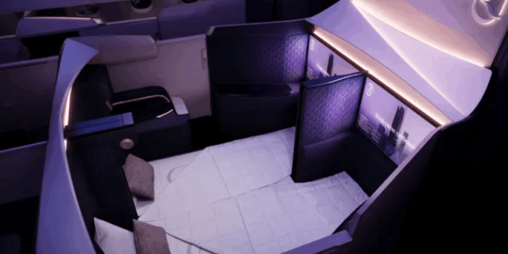 Qatar Airways tar trenden ett steg längre – deras Qsuite Next Gen kan omvandlas till ett helt vardagsrum för fyra personer. Här kan man dela på en flaska Laurent-Perrier Rosé, fälla ner OLED-skärmarna och låtsas att man är på middag i Doha snarare än på väg till Frankfurt.
