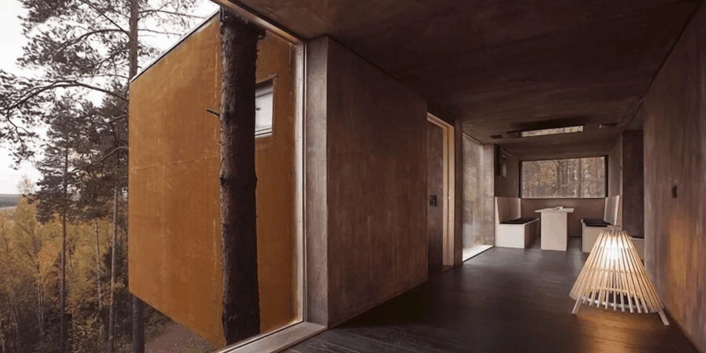 Här blandas specialsnidade träpaneler med samtida konst och en innergård som är magisk under sommarnätter.