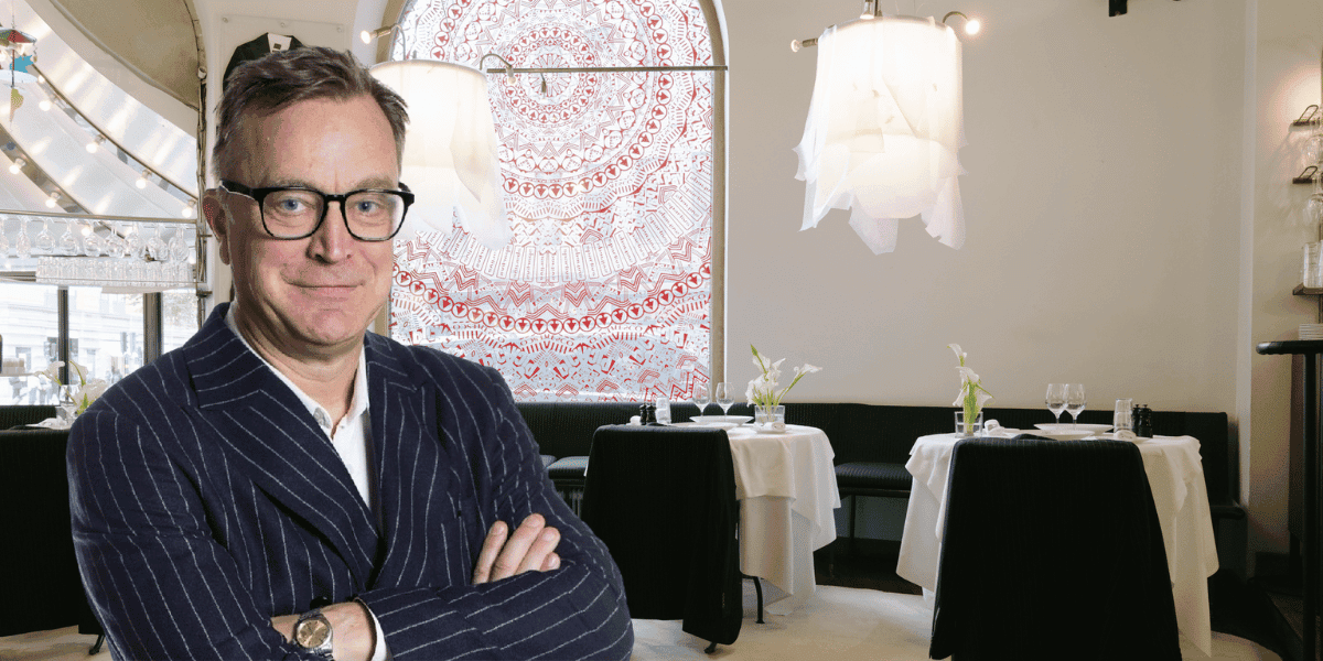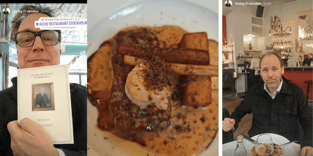 Äter lunch på Riche med Viktor Blomqvist, som är vd på Skultuna.