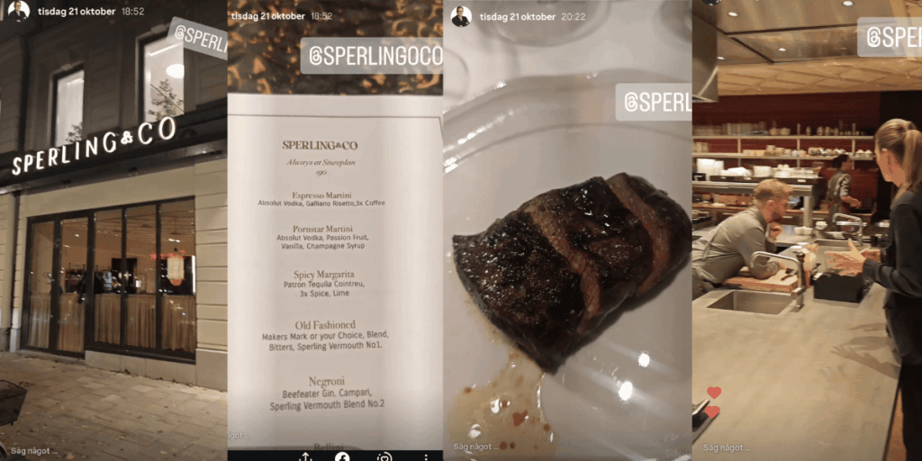 På kvällen äter jag och Anna middag på nyöppnade Sperling & Co, Stureplansgruppens nya köttkrog i Taverna Brillos gamla lokaler.